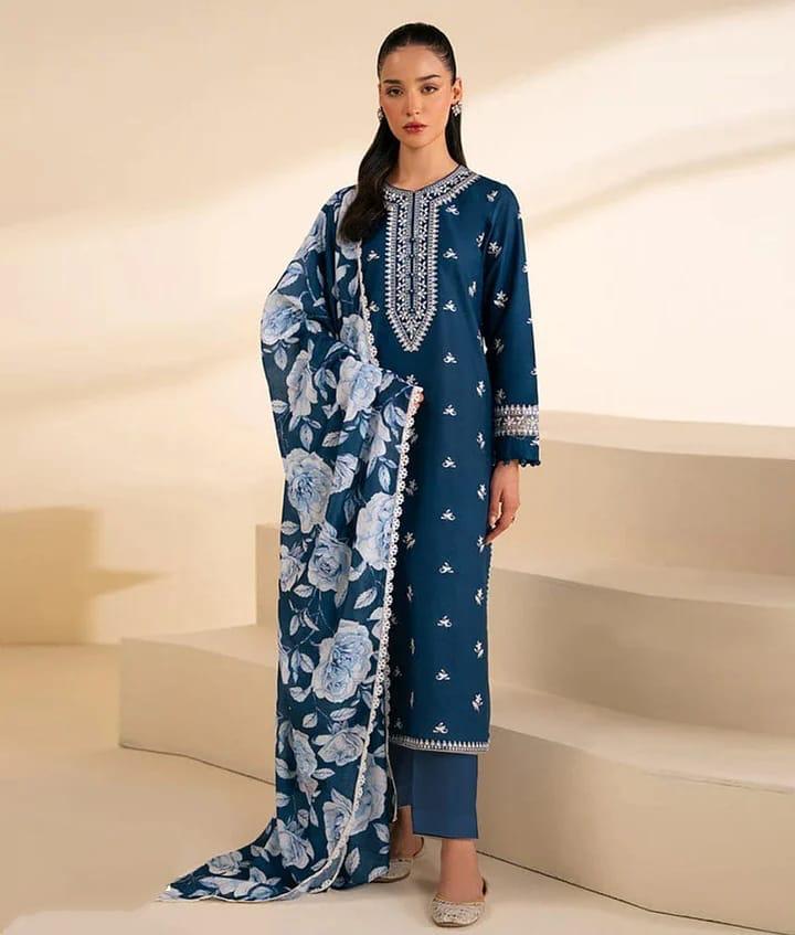 Luxury Embroidered 3-PieceSTUFF: Best Export Quality Airjet Dhanak Fabric ✔ Neck Embroidered + Front Full...