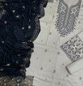 Embellishments: Heavy Zari thread embroidery on front, neck, sleeves, bottom patch, and shawl
