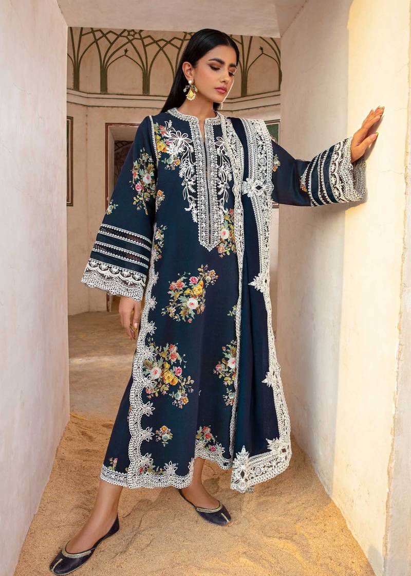 Embrace the perfect harmony of tradition and contemporary style with *Khaas - CM Dhanak 8901 | Maui*. This luxurious 3-piece ensemble showcases heavy embroidery on the front, sleeves, and daman, creating a rich, textured look. Paired with a digital print Kotrai shawl and plain Dhanak trousers, this set offers a balanced aesthetic—ideal for the modern woman who values both elegance and ease.
