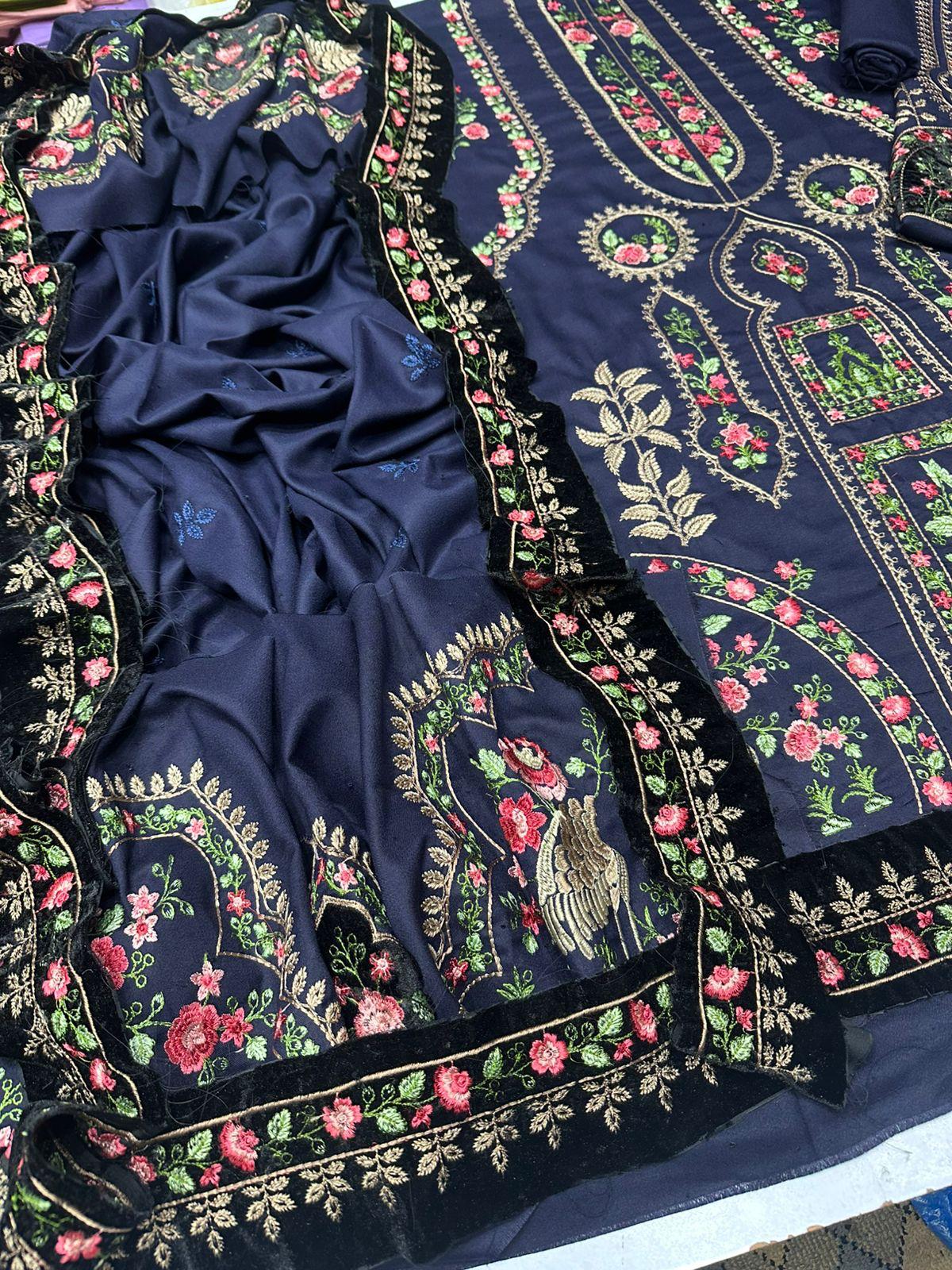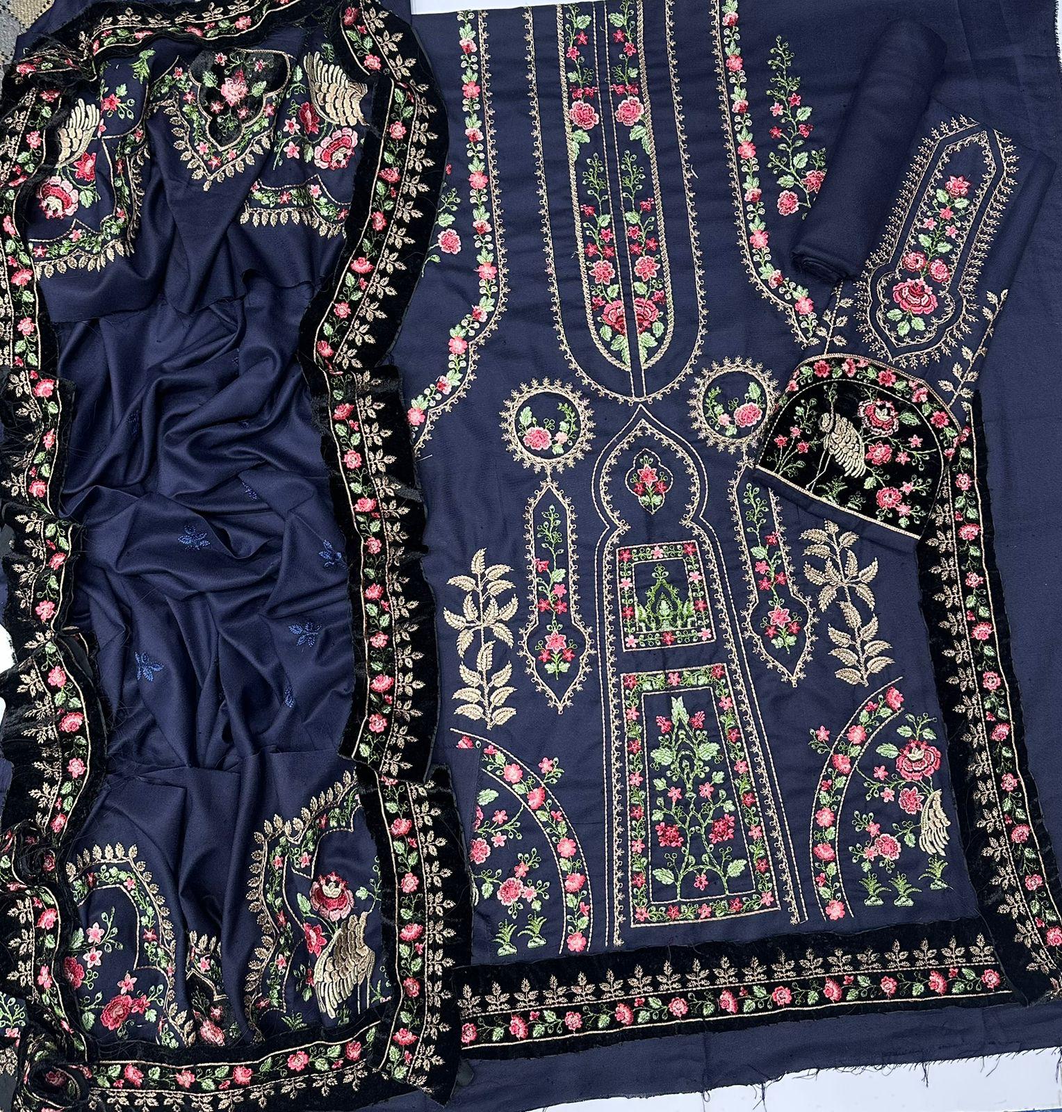 Luxury Embroidered 3-Piece with Velvet Appliqué Work