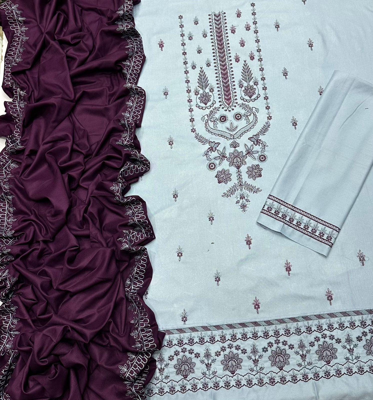 1 Heavy Double-Head Embroidered Dhanak Shirt